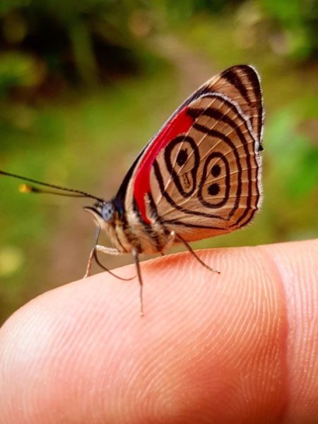 El proceso creativo tuvo un momento EUREKA, mientras recorría el predio de la finca, una mariposa con un extraordinario diseño se poso frente a mi, allí estaba el diseño perfecto. Investigué un poco más el fascinante mundo de este insecto y su enigmático y atractivo diseño o mejor dicho patrón formado a través de millones de años de evolución.